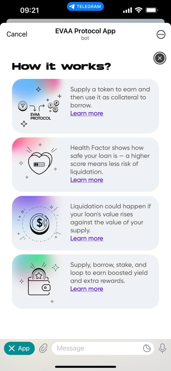 EVAA Protocol is a decentralized lending and borrowing platform built on The Open Network (TON) and fully integrated into Telegram Mini Apps.