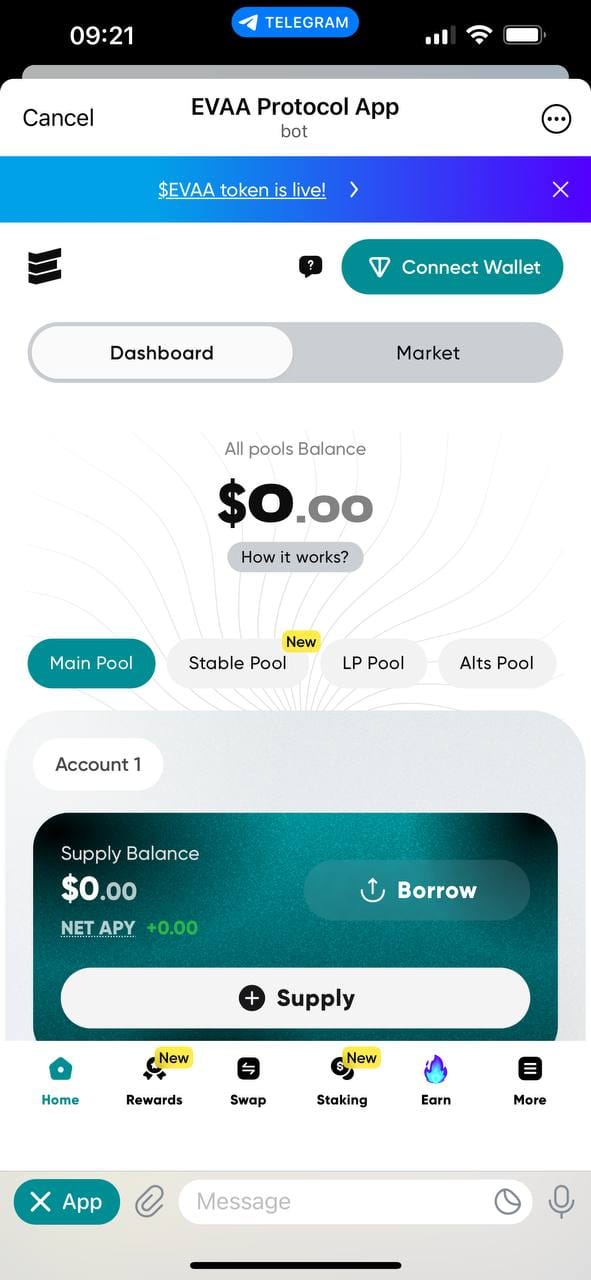 Проще говоря, EVAA приносит децентрализованный банкинг в окно вашего мессенджера.